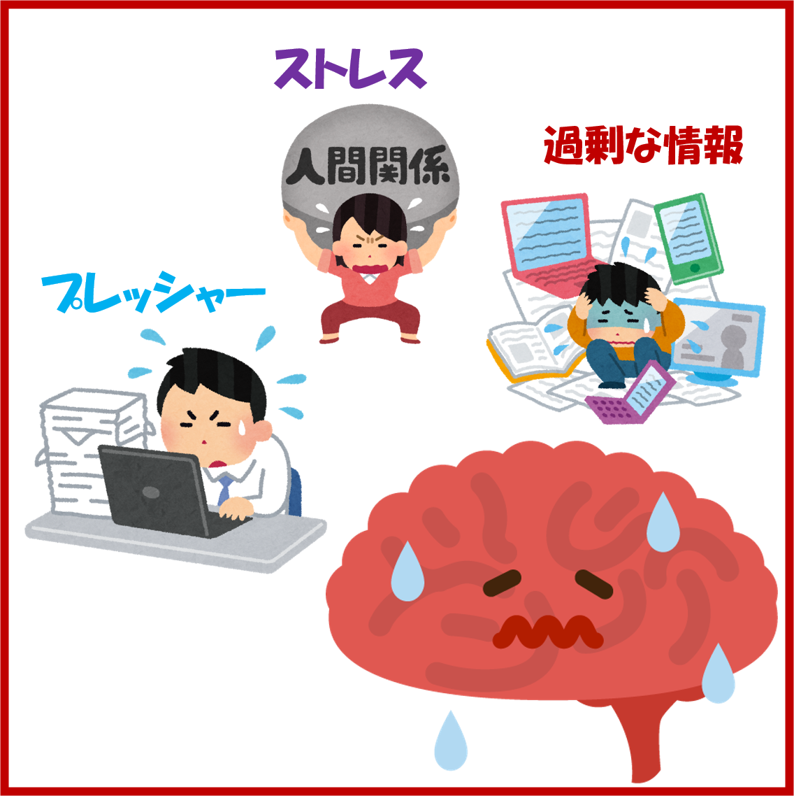 現代社会では、仕事のプレッシャーや人間関係のストレス、スマートフォンの使用などにより、過剰な情報にさらされ、余計な処理が必要になって自律神経が疲弊してしまいがちです。