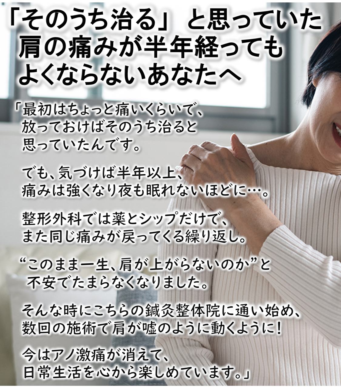 「放っておけばそのうち治る」と思っていた肩の痛み。